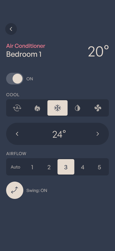 You can check and control the air conditioner in each room from the Home tab of the app.