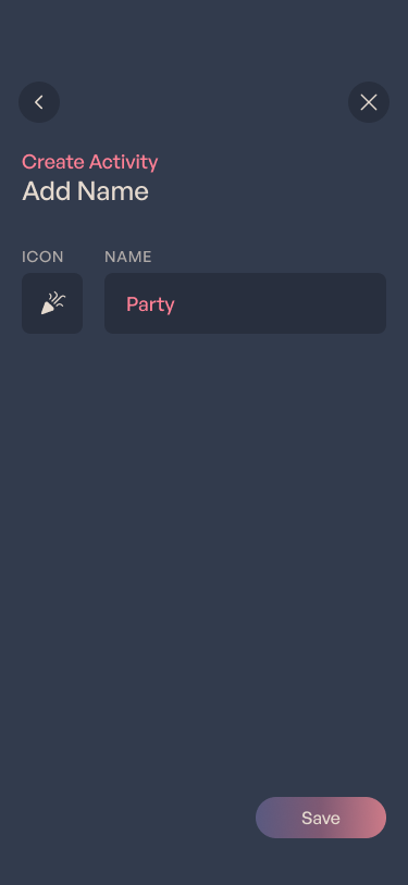 To create a new Activity, tap the “+” button at the top right of the Activities tab.