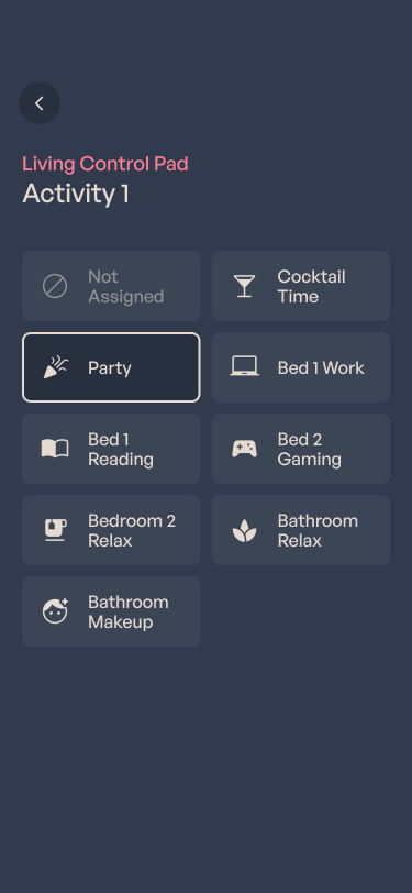 Example: Assigning “Party” to “Activity 1” of the “Living Control Pad”