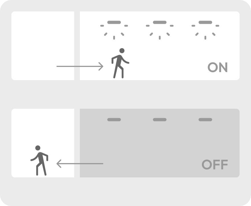 Sensors detect your presence — lights automatically turn on when you enter a room and turn off shortly after you leave.